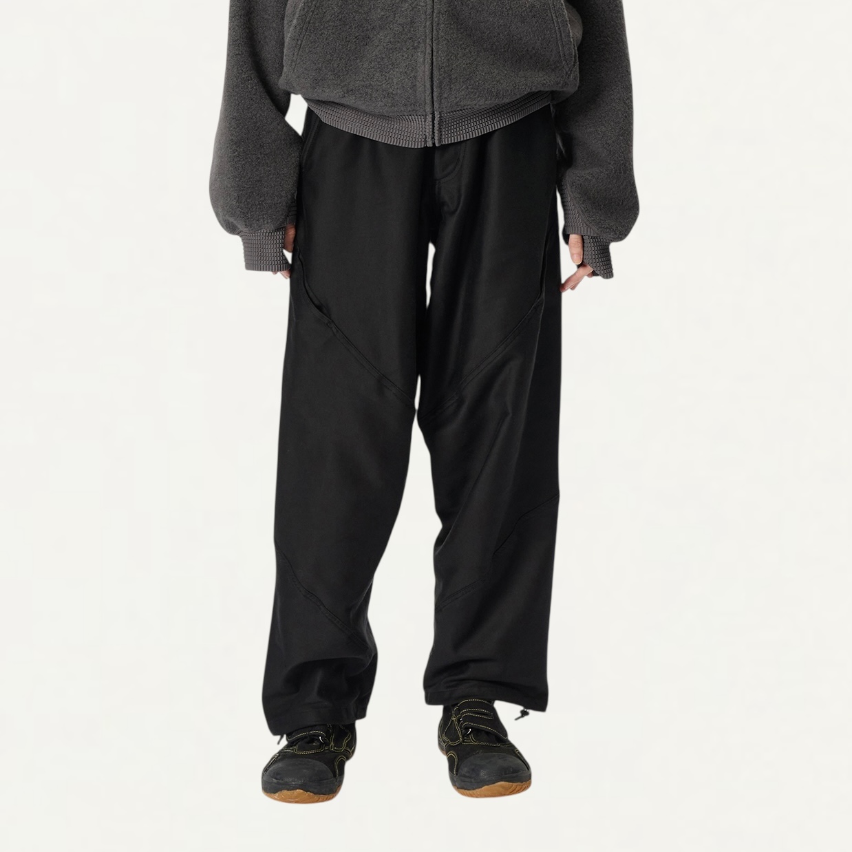 ・膝のツールポケットと裾のドローコードが機能性とデザイン性を両立