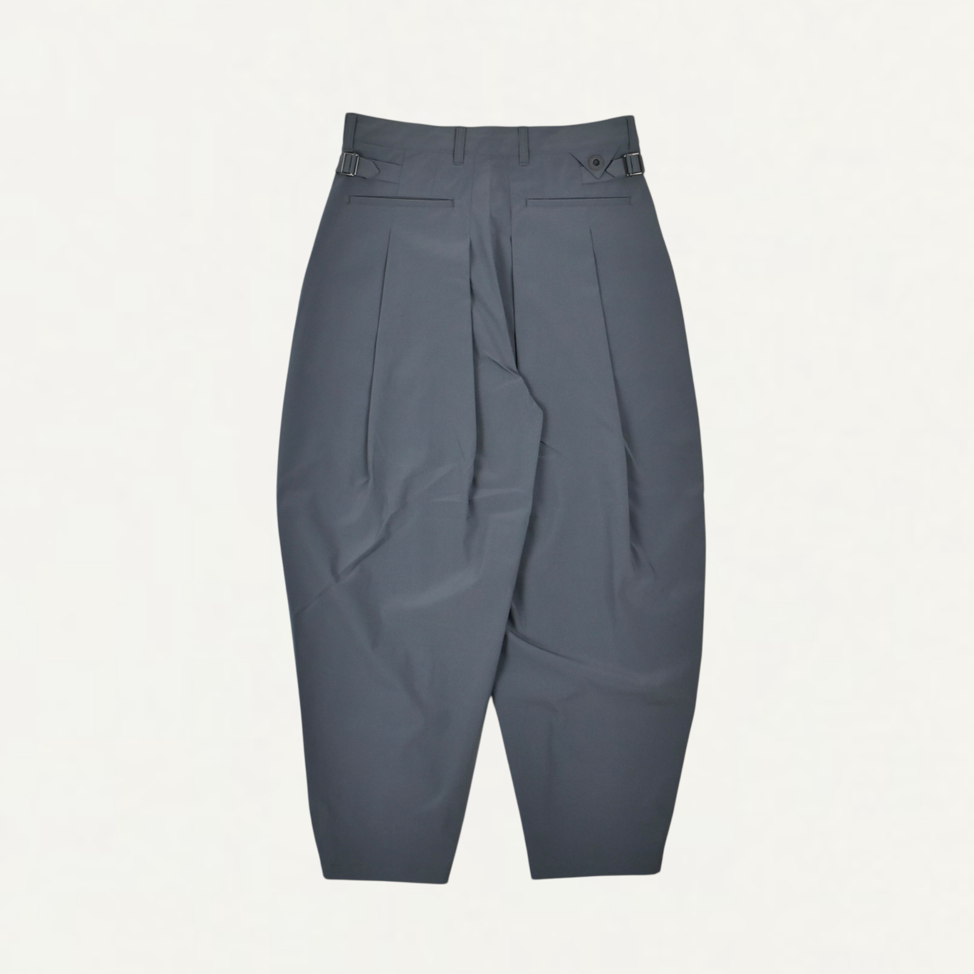 ・前後合わせて8本のタックを配置したワイドテーパードパンツ