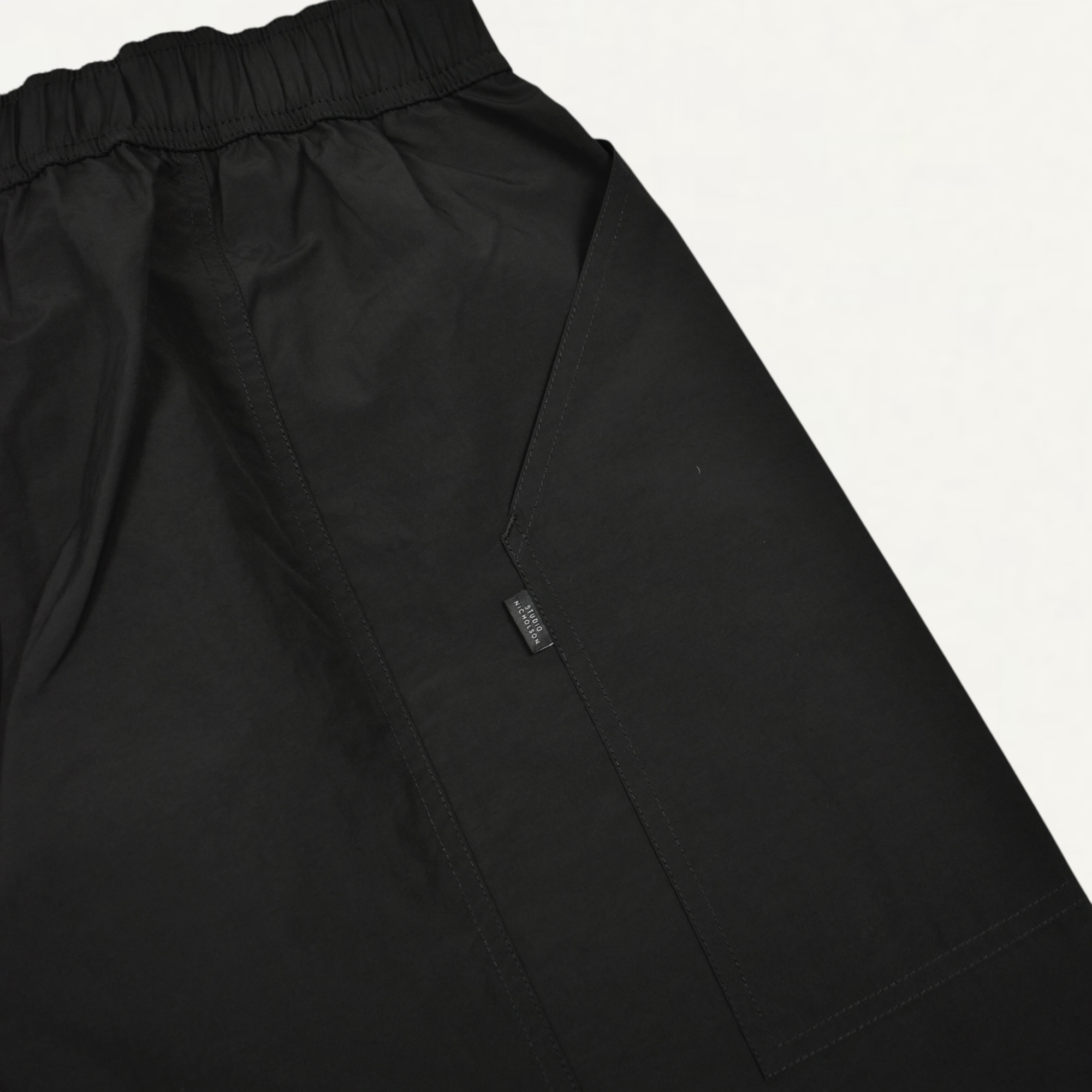 STUDIO NICHOLSON TECHNICAL NYLON COTTON ELASTICATED SHORTS COAL[GALO SNM-1473]