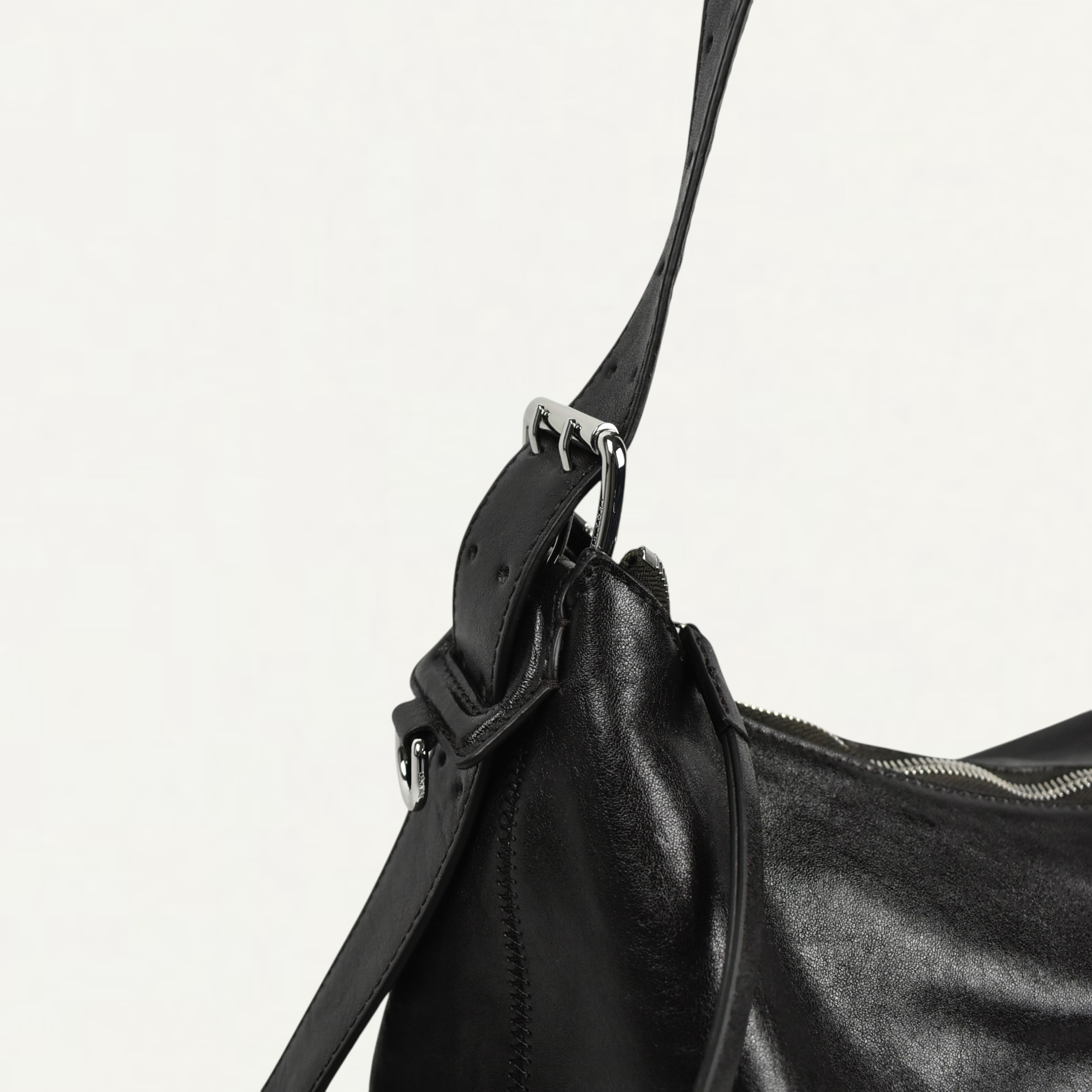 ・ベルト着想のベジタブルタンニンレザーストラップと 光沢のあるメタルパーツのコントラストが特徴のBeltedライン ホーボーバッグ
