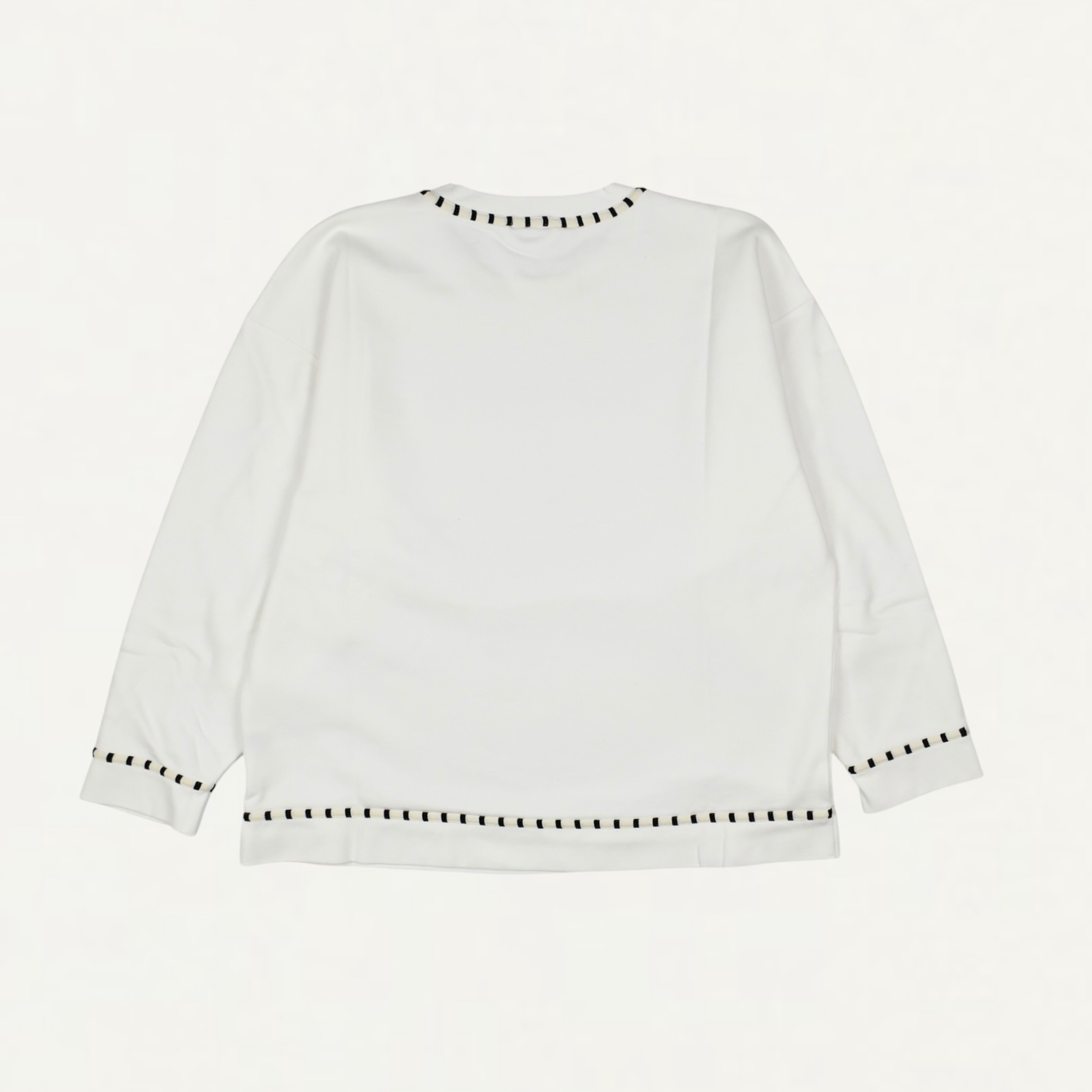 ・襟、袖口、裾にブラック×ホワイトのストライプリブトリム