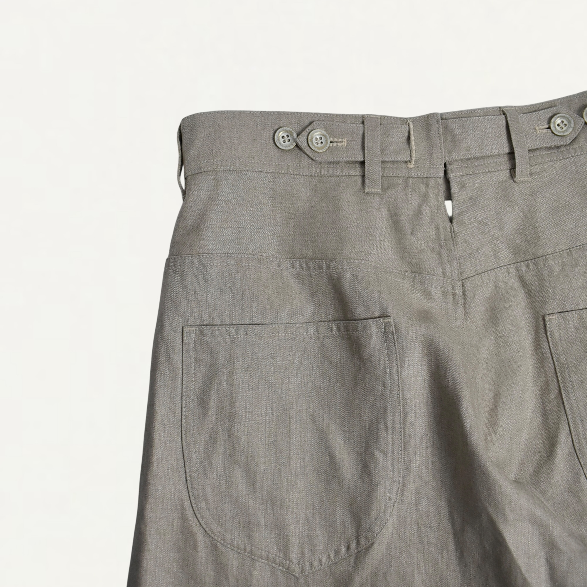 ・ウエストバック部分に特徴的なアジャスターを配置したトラッドなパンツ