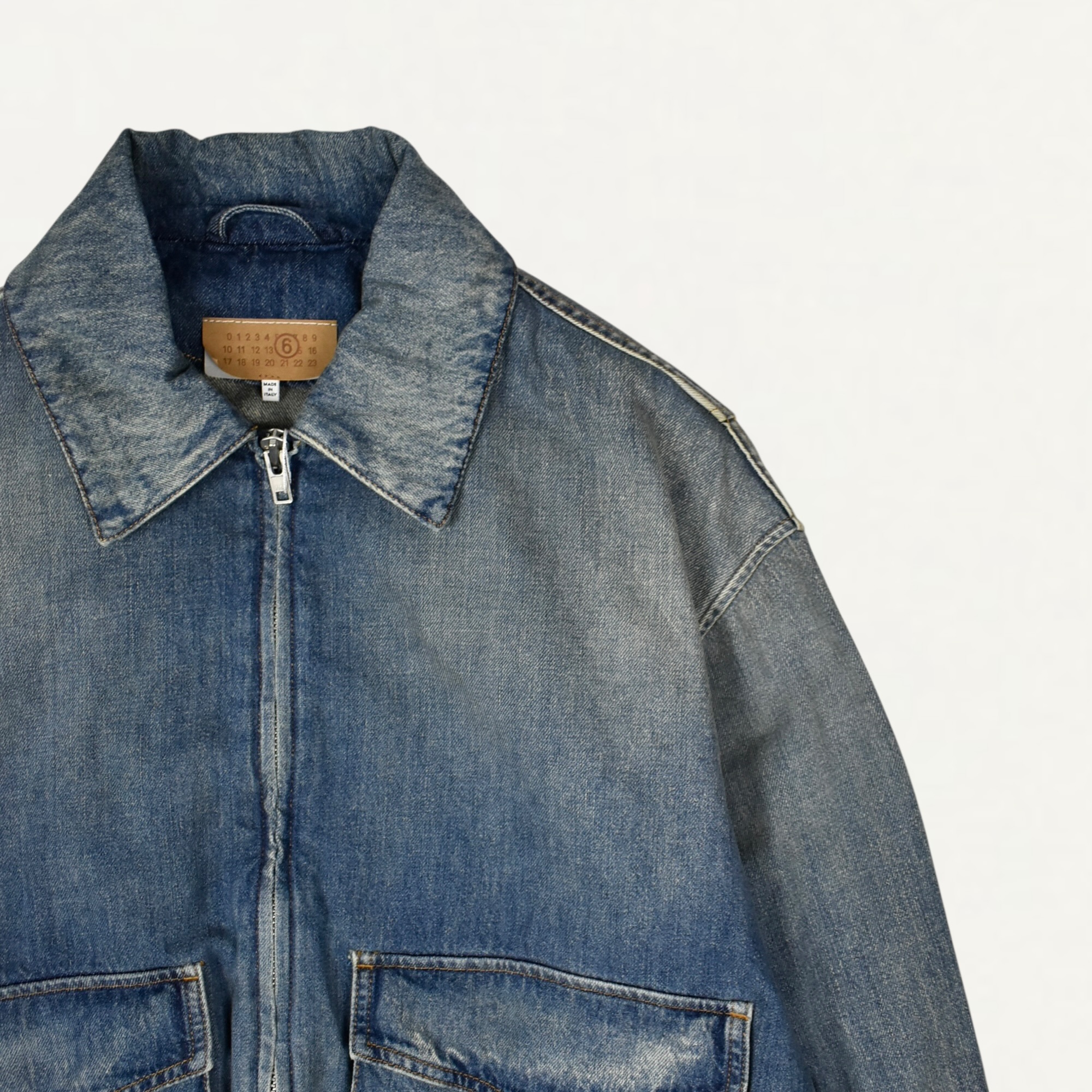 ・ウォッシュドデニムを使用したオーバーサイズジャケット