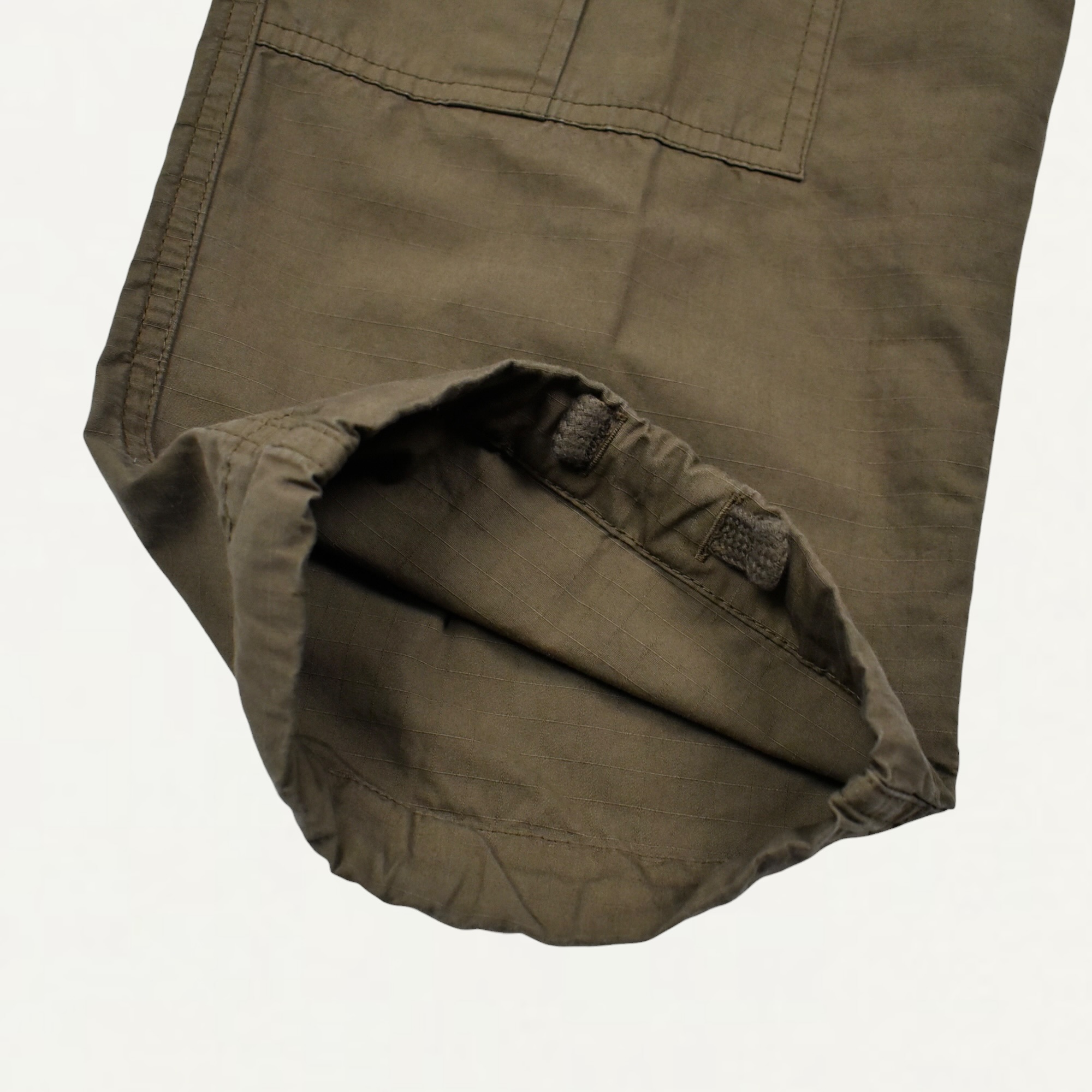 ・マーセライズド加工を施したオーガニックコットンリップストップ素材のカーゴトラウザーズ