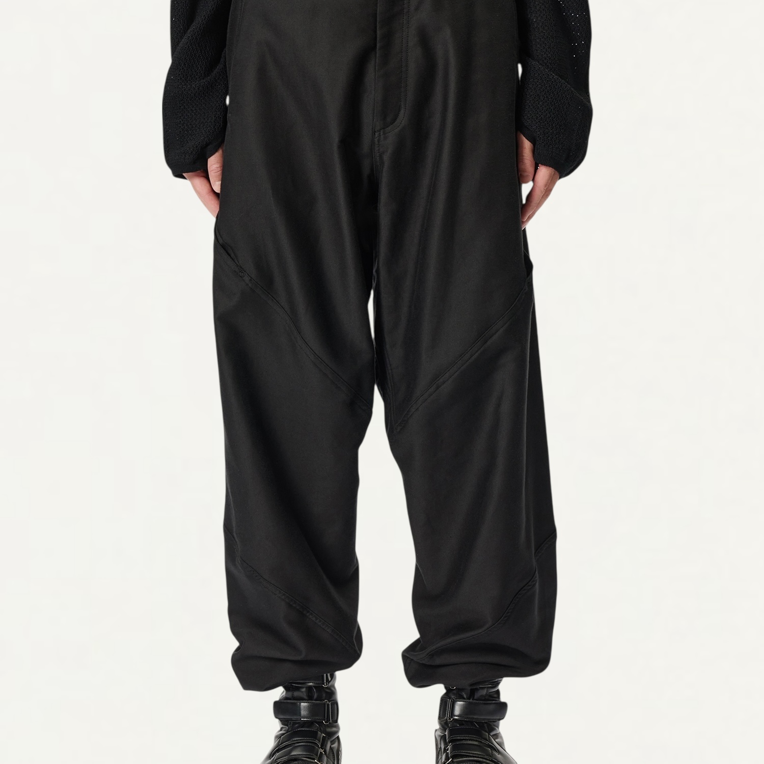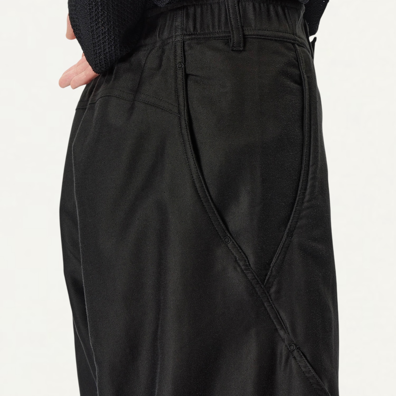 ・スパイラル構造で立体的に設計されたワイドパンツ