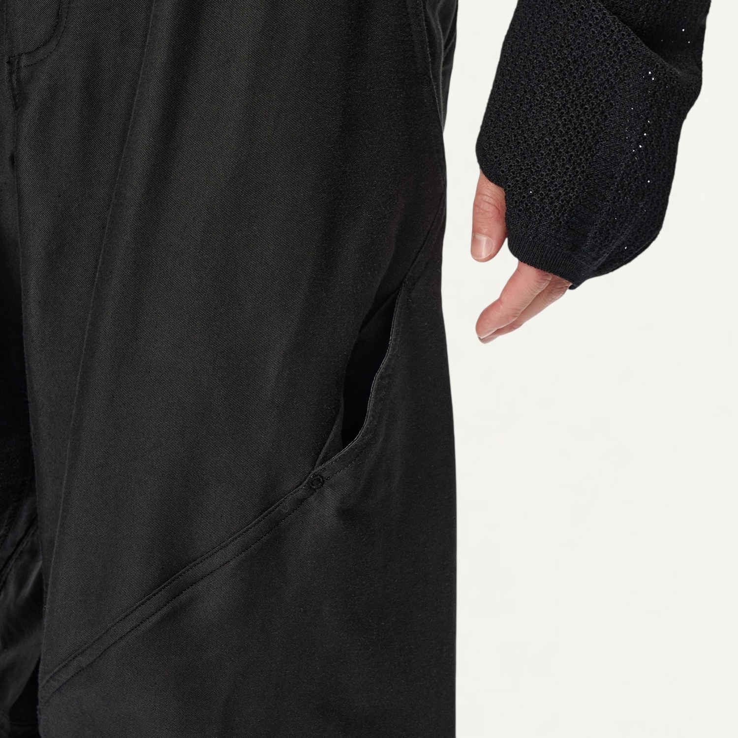 ・膝のツールポケットと裾のドローコードが機能性とデザイン性を両立