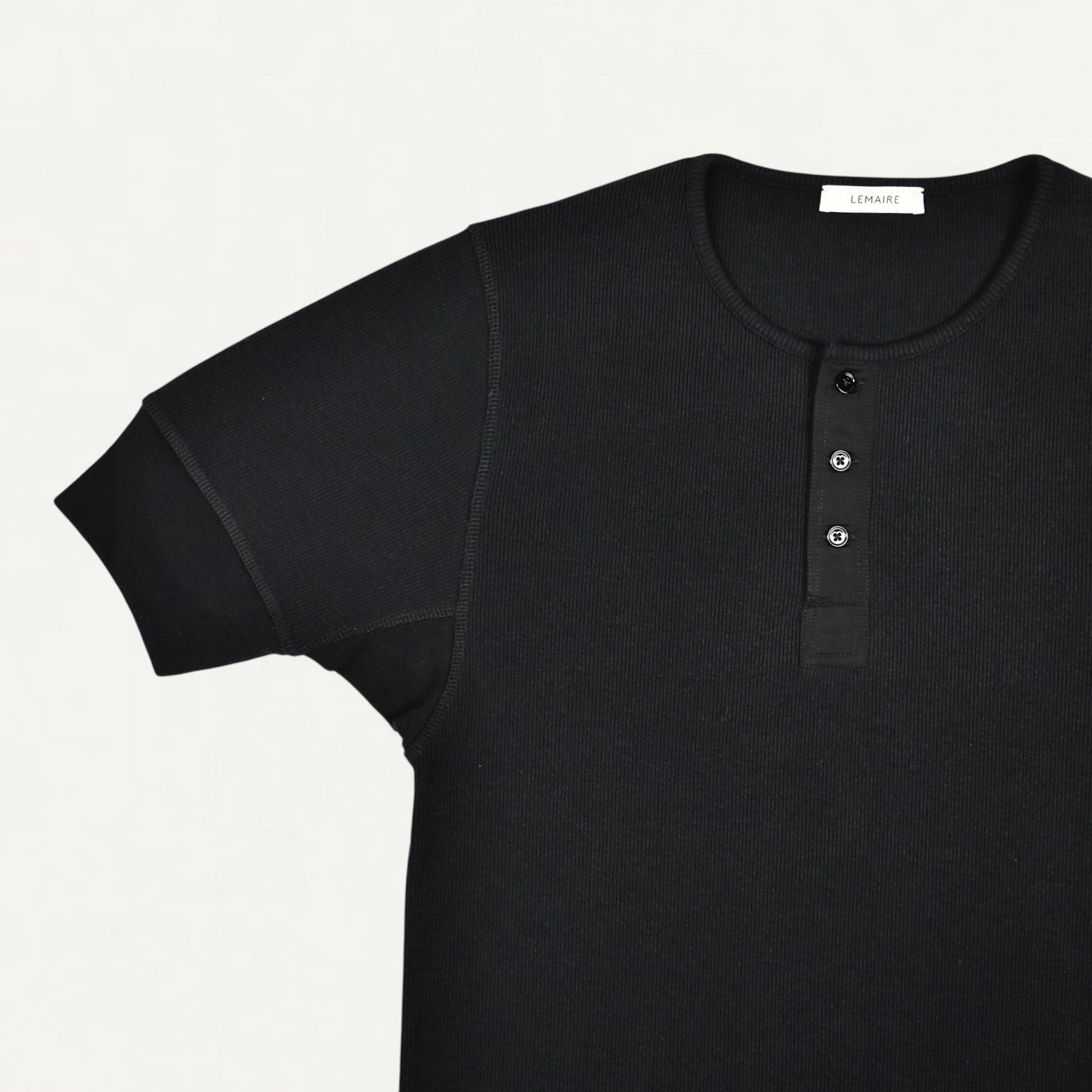 LEMAIRE RIB HENLEY TOP IN COTTON LINEN RIB JERSEY BLACK[TS0007 LJ1030]