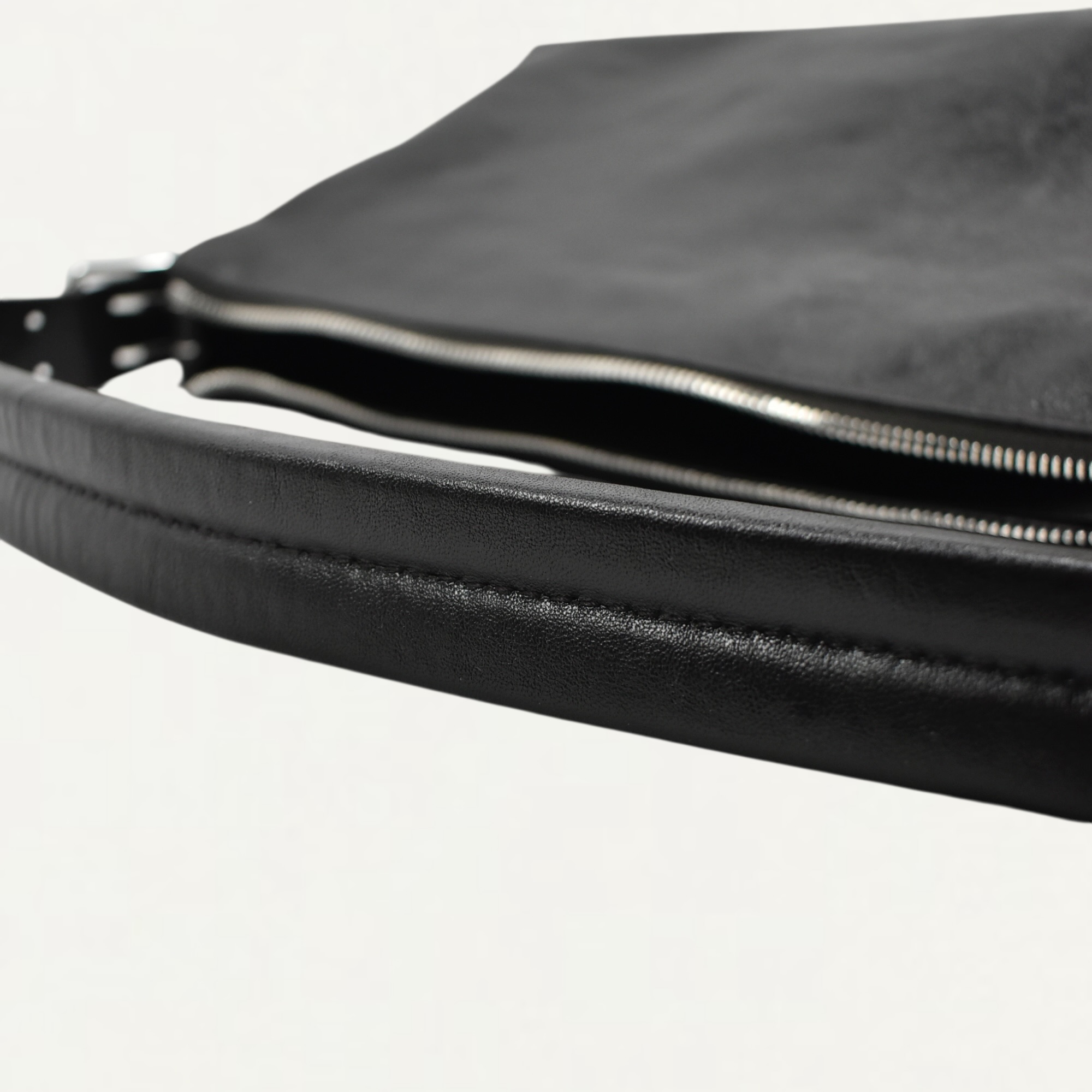 ・ベルト着想のベジタブルタンニンレザーストラップと 光沢のあるメタルパーツのコントラストが特徴のBeltedライン バゲットバッグ