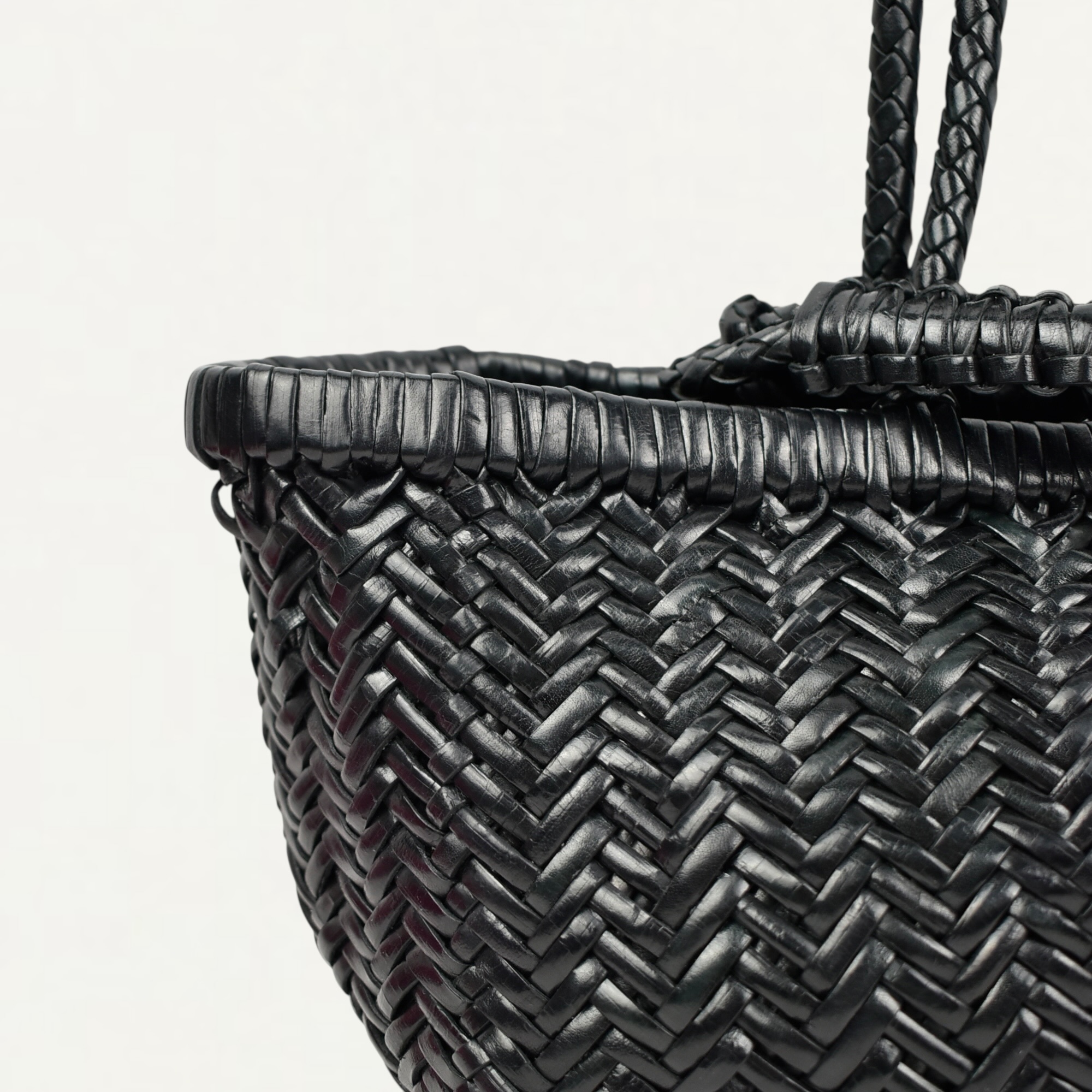 ・インドでベジタブルタンニン鞣しのカウレザーを用いて全面ハンドウーブンで仕立てたトートバッグ