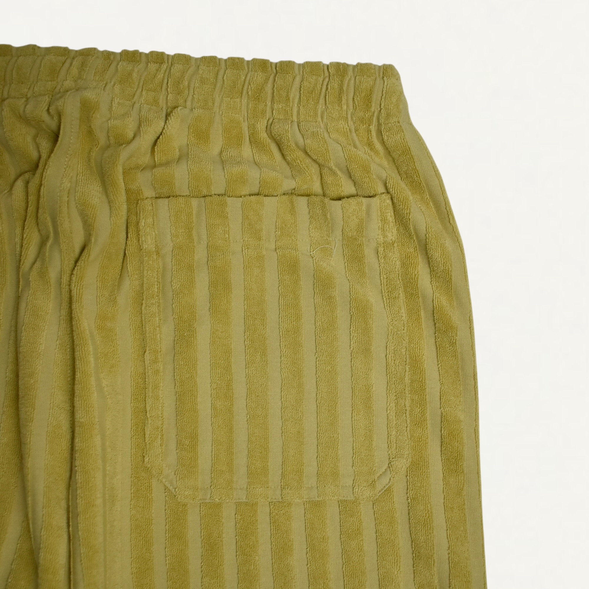 ・柔らかなグリーンのテリークロス素材を使用したスウェットパンツ
