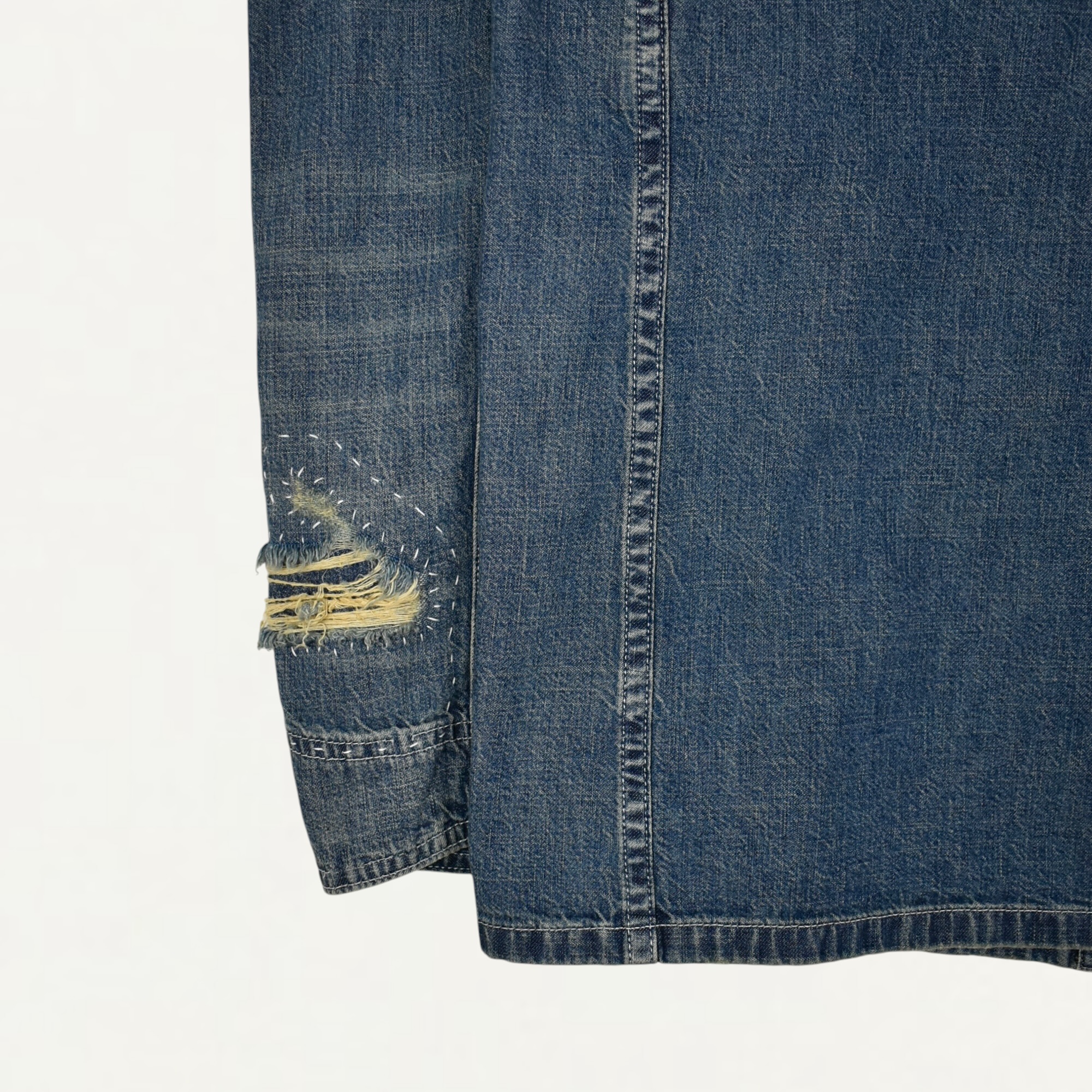 ・ダメージ加工とリペア跡をあえて見せたデザイン