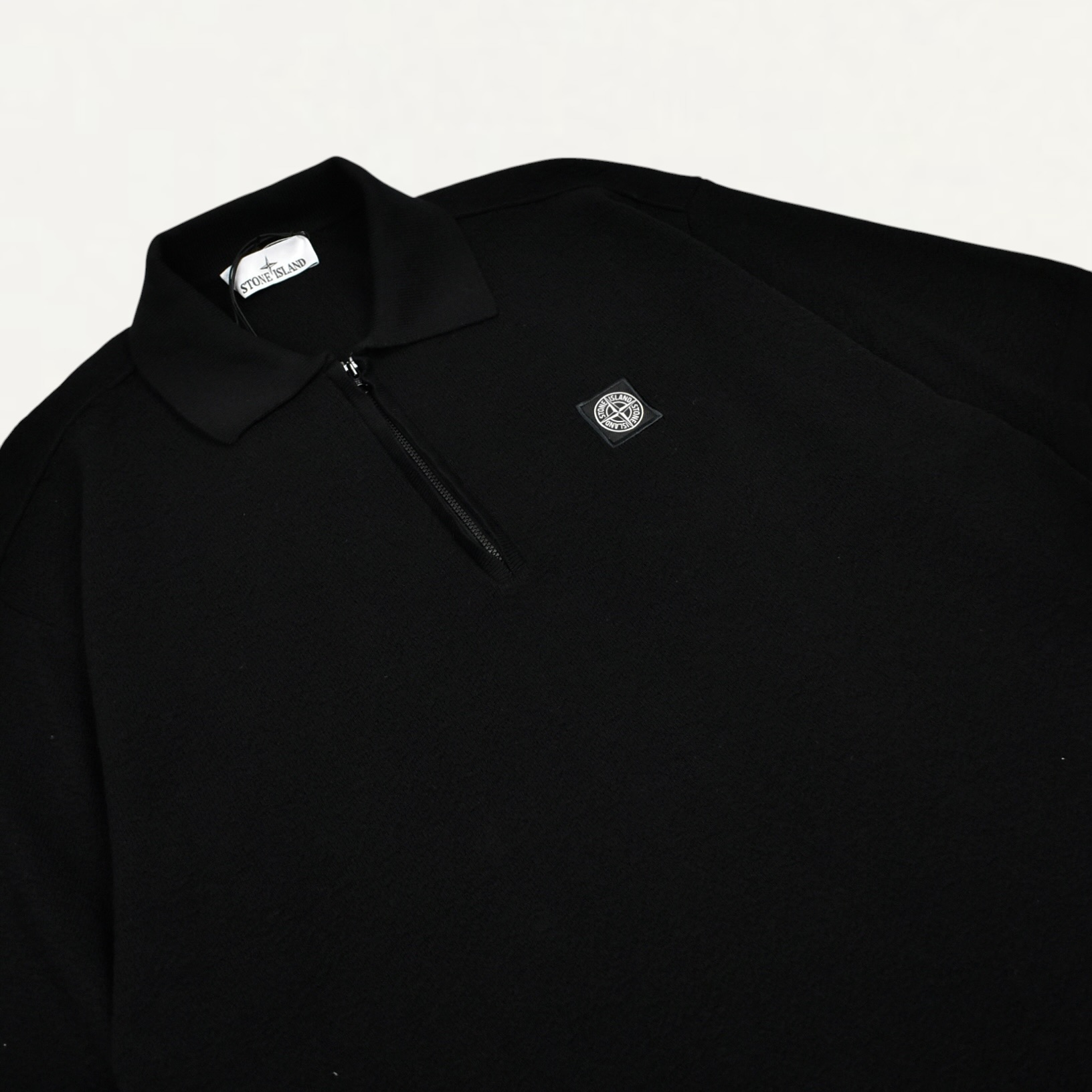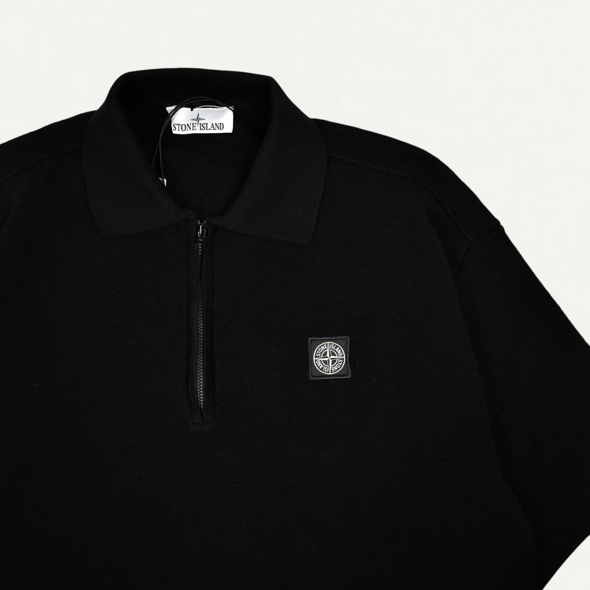 STONE ISLAND 5100021 Organic Cotton Knitted Zip-up Polo Shirt Black[S15-51000-21]